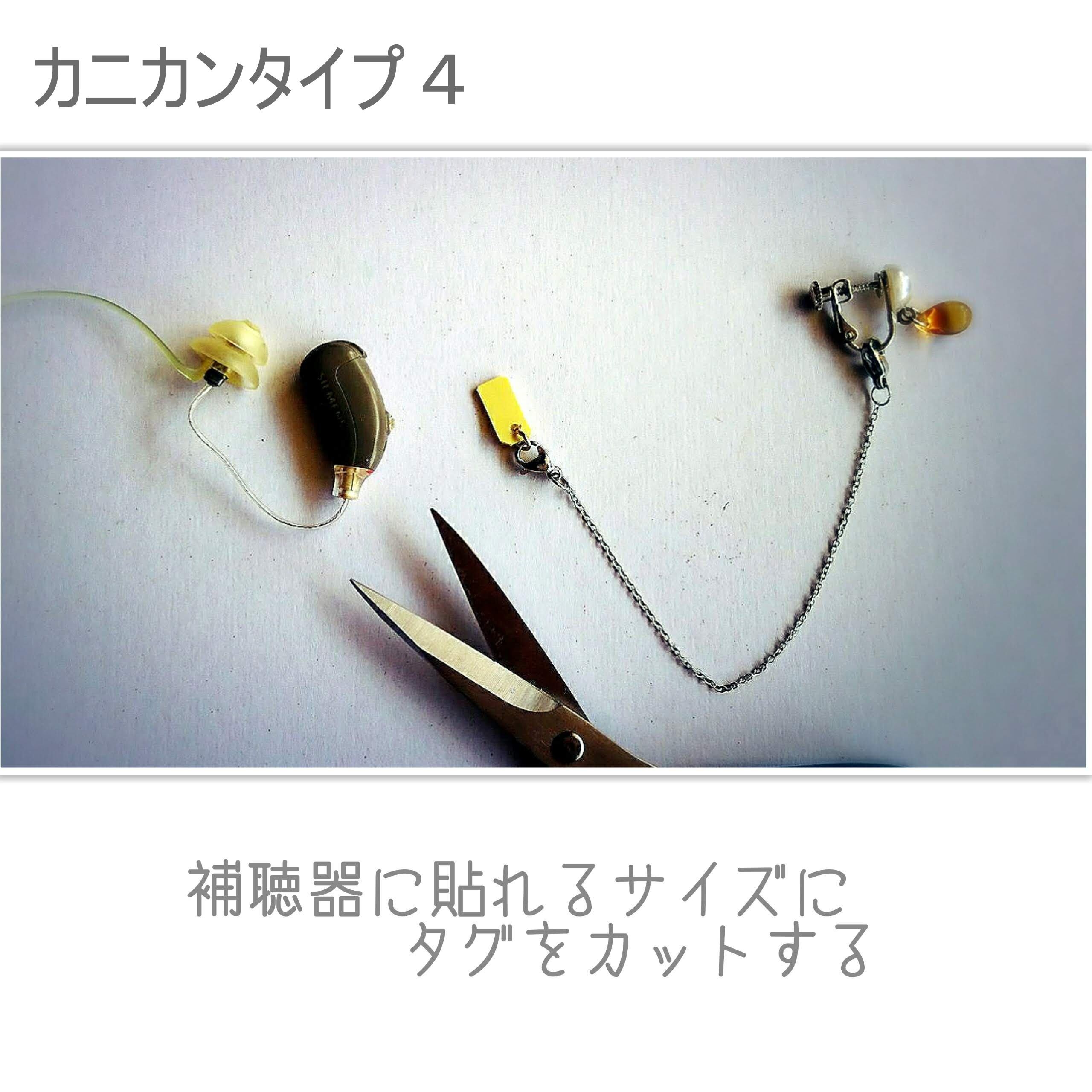 カニカンタイプはタグをそれぞれ剥離紙をはがして補聴器に貼り付ける。
